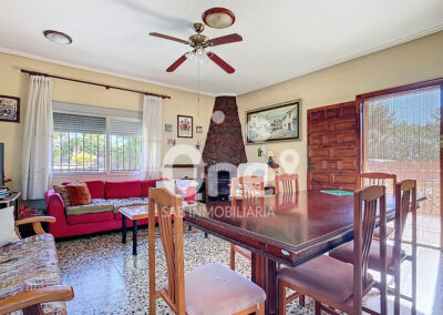 La casa principal, de 137 m² construidos, se distribuye en una única planta muy cómoda. El salón comedor, amplio y luminoso, cuenta con chimenea y salida a una segunda terraza de unos 25 m², perfecta para disfrutar del entorno natural. A continuación, un pasillo conduce a la cocina equipada, un baño completo con ducha, dos habitaciones dobles y una habitación sencilla, todas con buena ventilación y luz natural.