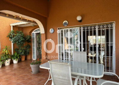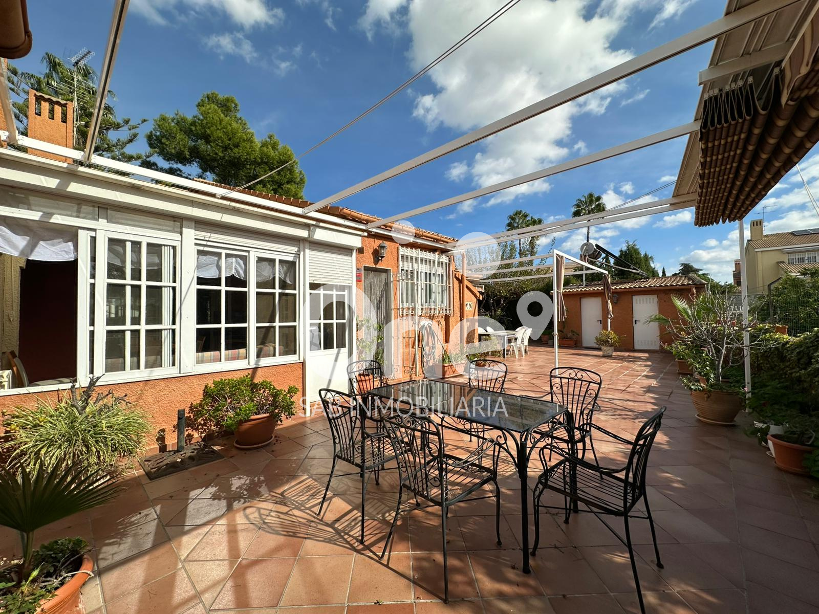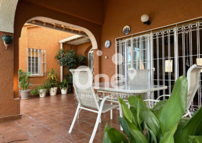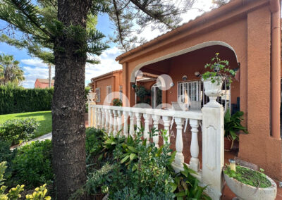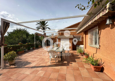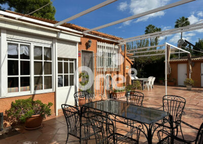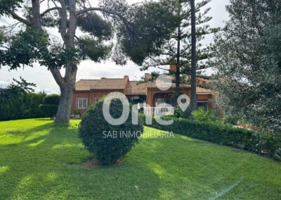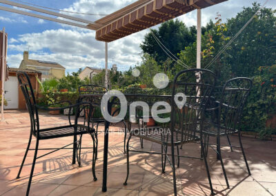 El exterior es una extensión natural de la casa: una patio trasero de más de 100 m² pensado para disfrutarlo en cualquier época del año, con baño completo con ducha, dos trasteros polivalentes y paellero, rodeada de amplias zonas ajardinadas que ofrecen espacio de sobra para incorporar una piscina o cualquier zona de ocio que imagines. En la fachada principal, el garaje cerrado completa un conjunto funcional, cómodo y listo para disfrutar, que ofrece muchísimas posibilidades.