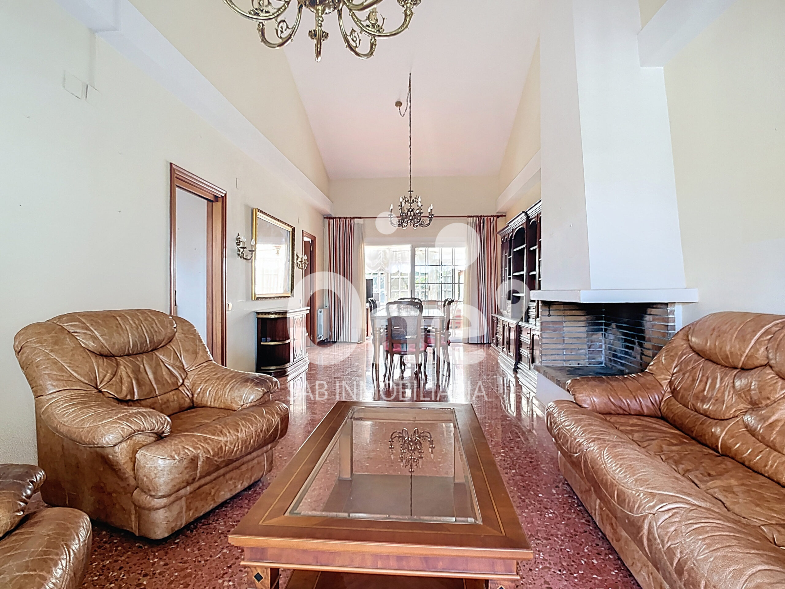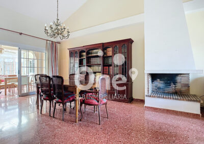 Desde el recibidor, el recorrido se abre a un salón comedor con chimenea que invita a quedarse.