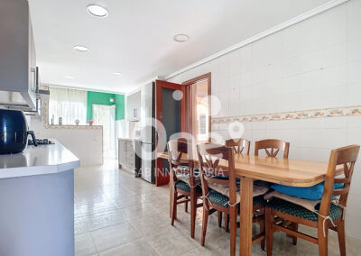 La estancia cuenta con salida a una terraza principal, perfecta para comidas y sobremesas al aire libre, y también a una terraza de invierno acristalada, íntima y luminosa, que conecta con una habitación extra ideal como despacho, estudio o zona de relax. La cocina office, amplia y muy práctica, se comunica con el recibidor y tanto con el salón como con la terraza de invierno, generando un espacio fluido que une las zonas de día y multiplica las posibilidades de uso.