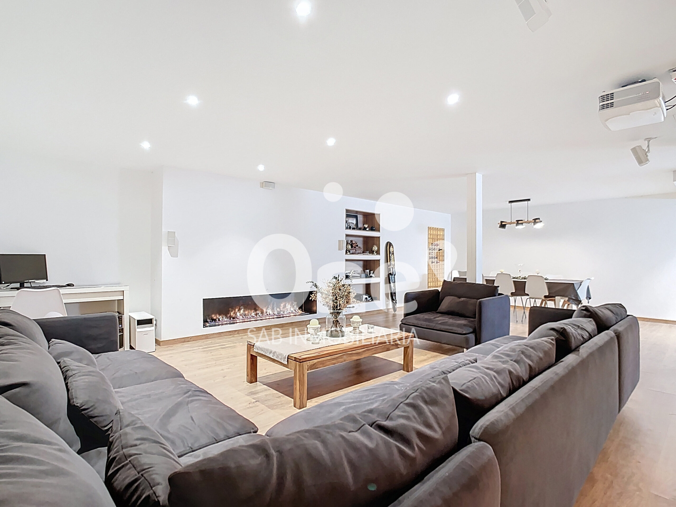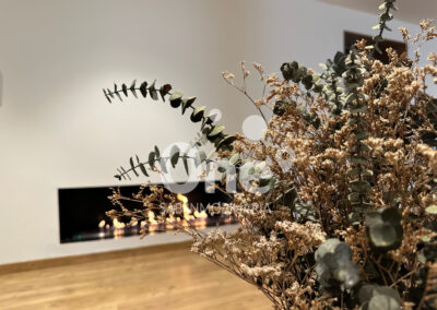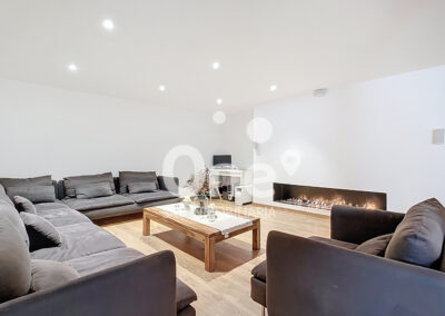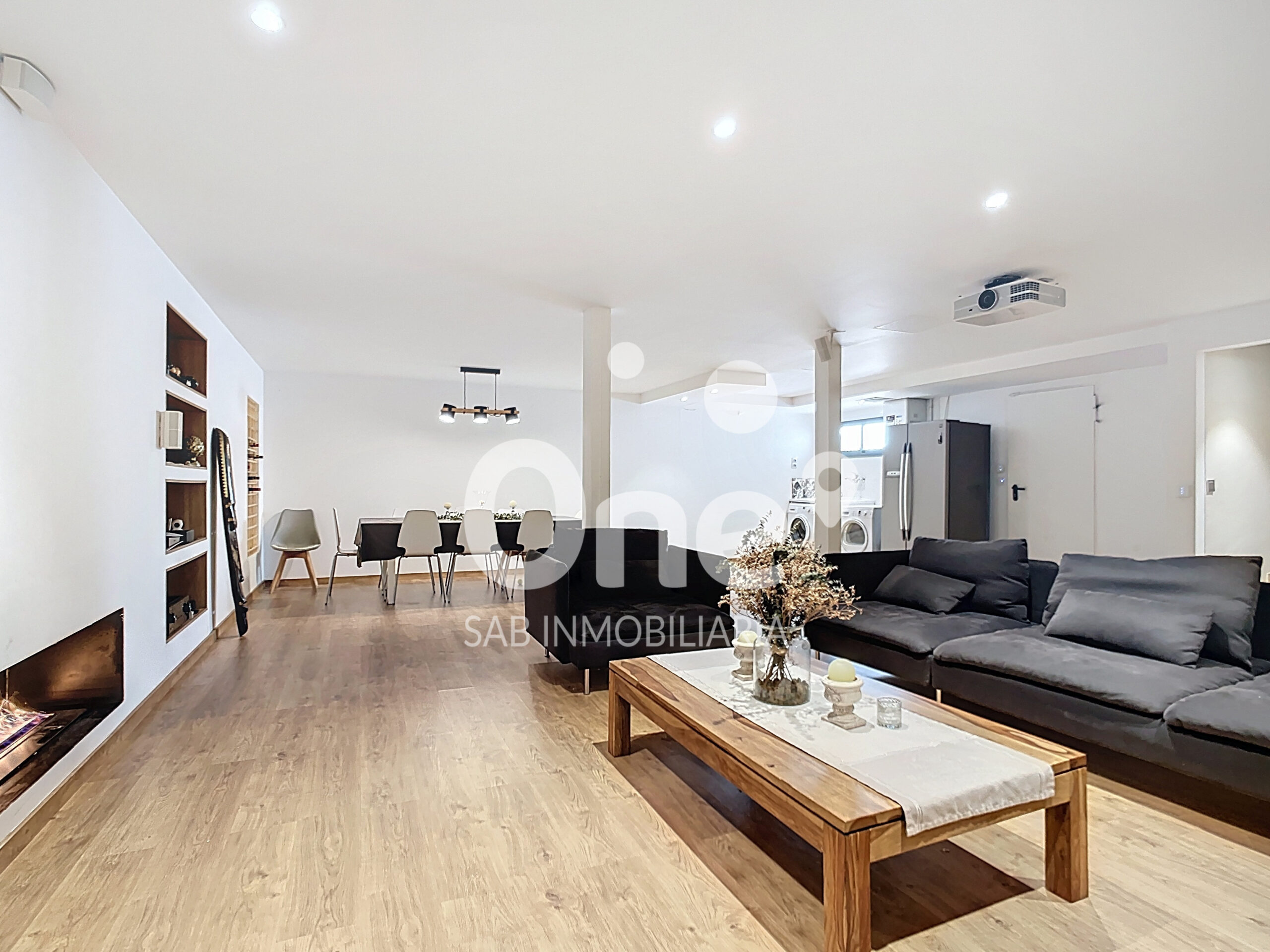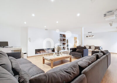 El semisótano es, sencillamente, diferencial. Más de 100m² diáfanos convertidos en un segundo salón con chimenea de bioetanol: un ambiente perfecto para reuniones, cine en casa con altavoces Bosé o zona de ocio. Cuenta además con vinoteca integrada, zona de lavandería, trastero y acceso directo desde el jardín, lo que aporta comodidad y versatilidad. Un espacio que eleva la vivienda a otro nivel.