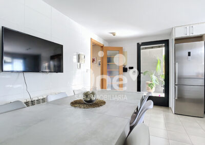 Frente al recibidor encontramos la cocina, amplia y funcional, con zona office y completamente equipada. Un espacio diseñado para disfrutar tanto en el día a día como en reuniones especiales, con salida directa a la terraza posterior. En esta misma planta también encontramos un baño completo con ducha y una habitación con armarios empotrados, perfecta como dormitorio, despacho o habitación de invitados.