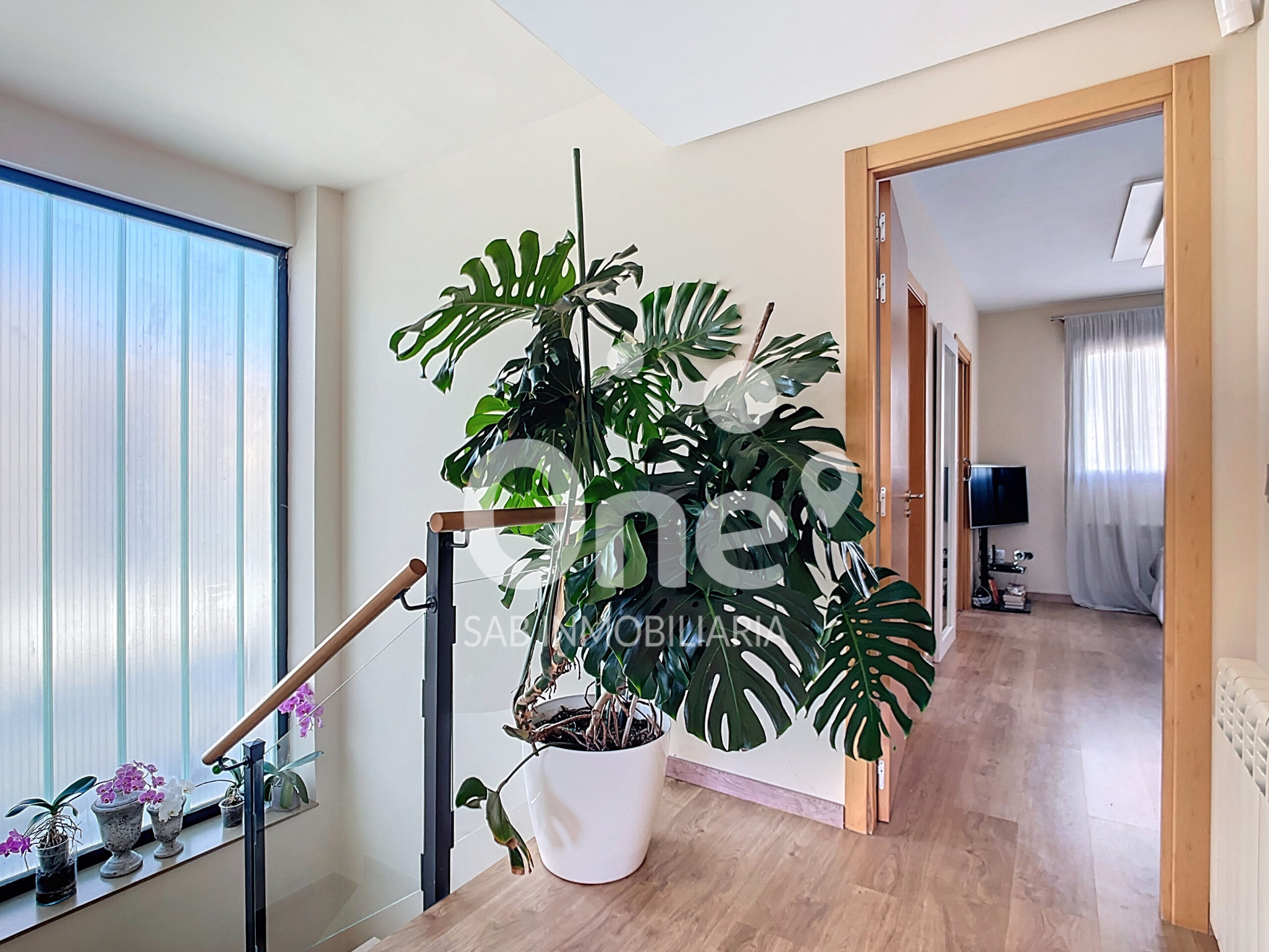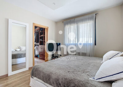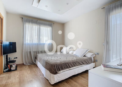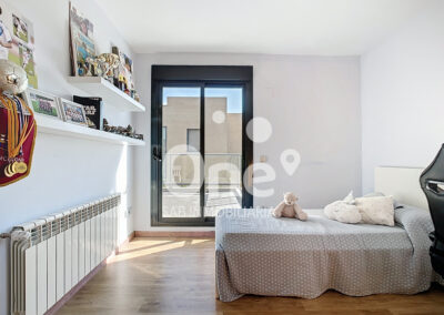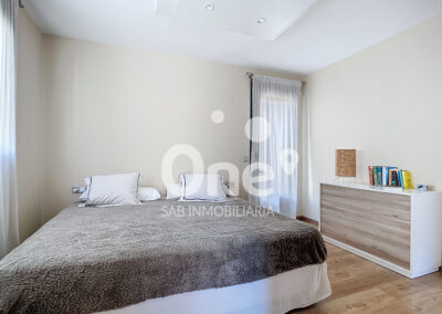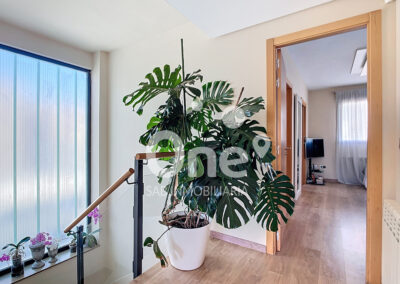 La primera planta está presidida por un gran ventanal traslúcido que inunda de luz natural toda la escalera, creando una atmósfera elegante y contemporánea. El distribuidor da acceso a la zona de descanso, donde la exclusividad vuelve a ser protagonista. La suite principal dispone de gran vestidor y baño en suite con ducha, combinando privacidad y confort. Además, hay dos amplias habitaciones dobles, ambas con armarios empotrados. Las tres estancias comparten salida a una espectacular terraza de más de 25m² con vistas despejadas, un espacio privilegiado donde disfrutar del aire libre con total intimidad.